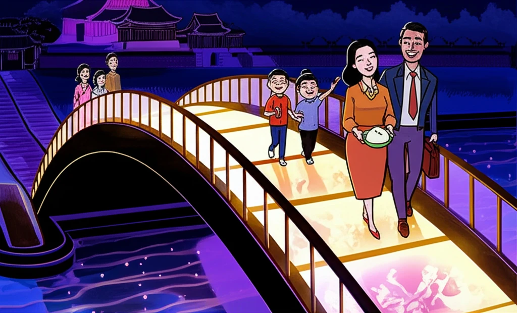 "다리 바닥 일부가 투명 유리로 되어 있어 발밑으로 흐르는 강물을 아찔하게 감상할 수 있답니다. 낮에는 은빛으로 빛나는 강줄기가 멋지고, 밤에는 화려한 조명이 켜져 꿈결 같은 야경을 자아내죠."