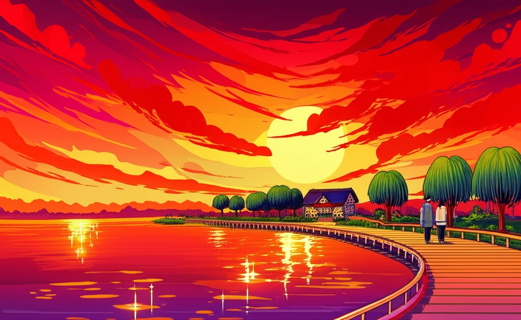 | 반월호수 둘레길 | 반짝이는 윤슬과 환상적인 노을 | 커플 및 산책객 |